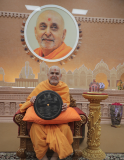 The disc was blessed by the current spiritual leader of BAPS, His Holiness Mahant Swami Maharaj, on December 29, 2022 during the centennial celebrations of Pramukh Swami Maharaj in Amdavad, India. It carries Mahant Swami Maharaj’s heartfelt prayer of peace and happiness for all:“In the joy of others lies our own. In the good of others abides our own. With this life-motto, His Holiness Pramukh Swami Maharaj (1921-2016), a universal spiritual leader and great saint of our time, dedicated his entire life in the upliftment of humanity. On the occasion of his Centenary Celebrations, I pray at the lotus feet of Bhagwan Swaminarayan that may all people get bliss and happiness through imbibing spiritual and moral values. May harmony and unity spread everywhere in the world. May love and respect for each other flourish everywhere. May auspicious wishes come true.”