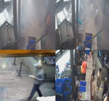 The footage shows the alleged bomber wearing a white cap, grey shirt and black pants, carrying a dish at the Rameshwaram cafe before the blast.