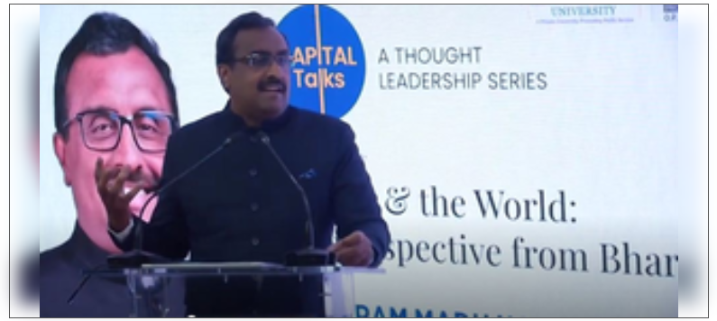 A heteropolar world, rise of China, and a new cold war marks the changing world order today and the decline of international institutions like the UN, falling international dollar, human displacement due to climate change and influence of global technology corporations will mark the new global order in this century,” said Dr Ram Madhav, President India Foundation at Capital Talks, A Thought Leadership Series which began with the lecture titled India & The World – A perspective of Bharat, organised by O.P. Jindal Global University.