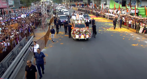 Students present at the roadshow said school authorities instructed them to gather at the Sai Baba Colony junction two hours before the event. This was close to the starting point of the roadshow, between Ganga Hospital on Mettupalayam Road and the Head Post Office in R.S. Puram.