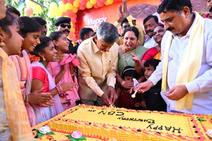 Naidu’s wife N. Bhuvaneswari celebrated his birthday with party leaders by cutting a cake in his Assembly constituency, Kuppam in Chittoor district. After offering prayers at a temple in Kuppam, she joined the celebrations with party leaders.