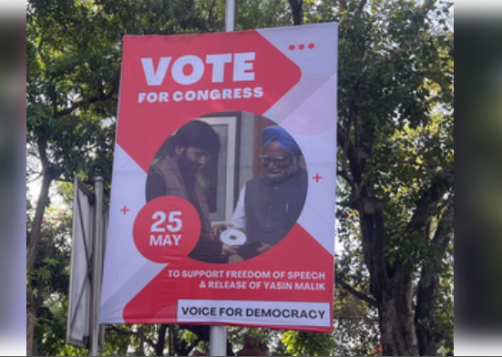 Poster featuring Yasin Malik, ex-PM Manmohan Singh & seeking votes for Cong removed by Delhi Police