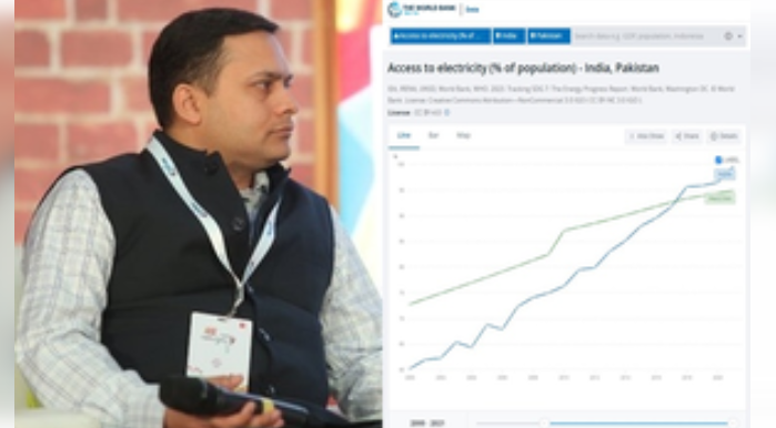 He also shared the World Bank statistics showing access to electricity in India and Pakistan through the years.