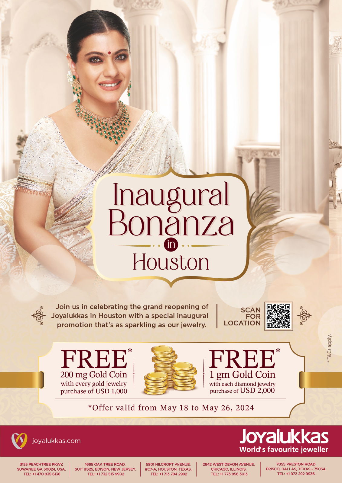 The festivities will kick off with the reopening of the renovated store in Houston on Saturday, may 18th, followed by the inauguration of the new store in Dallas on May 26th, On June 2nd, Joyalukkas will proudly unveil its new store in Atlanta, followed by the renovated outlets in Chicago on June 9th and New Jersey on June 15th, 2024.