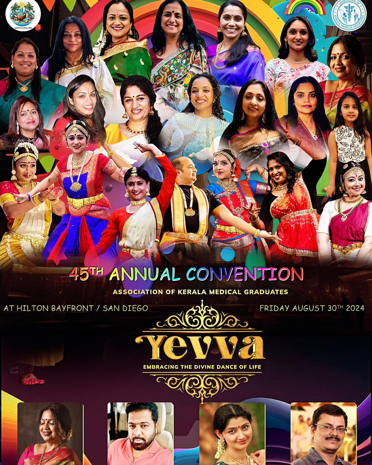 We invite you to join us for this historic performance on August 30th at the Hilton Bayfront, San Diego, during the “All Kerala Medical Graduates” 45th Annual Convention. Witness the blend of innovation and tradition as "YEVVA" transforms the stage into a vibrant canvas of sound and spirit.