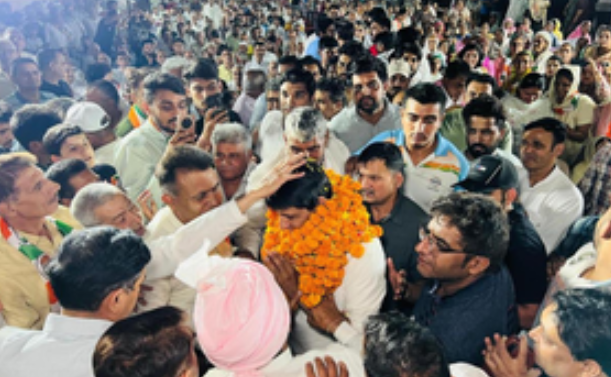 During his campaign, the junior Hooda was seen making crispy and crunchy “jalebi” at a roadside stall. In his public meetings, women with their faces covered in a ghunghat (veil) are coming in strength to raise issues concerning them and the treatment meted out to wrestlers.