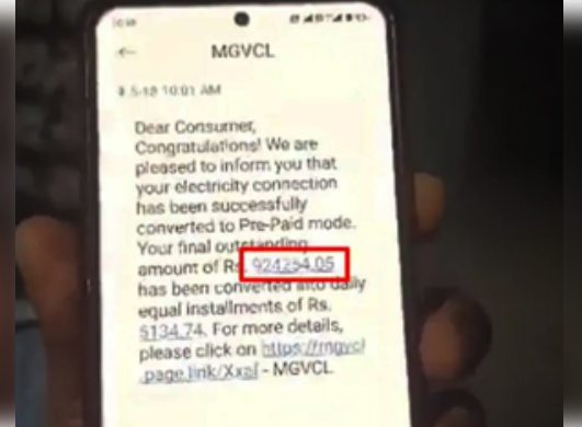Rahish, a Subhanpura resident living in a rented house, received an SMS from Madhya Gujarat Vij Corporation Limited (MGVCL) stating that his bill balance was Rs 9.24 lakh.