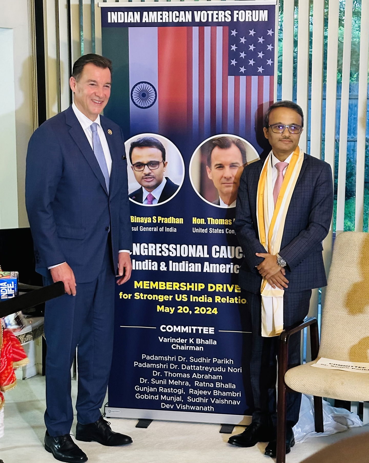 Suozzi was speaking in the presence of Consul General Binaya Srikanta Pradhan and other community leaders at an event hosted by Varinder and Ratna Bhalla at their residence.
