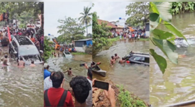 "This is not the first time such a thing has happened. Long back a troupe of late actor Rajan P. Dev had missed the original route and landed in the pond. There are no warning signals on the road," said locals.