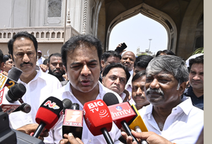 Rama Rao, along with several BRS leaders, visited Charminar for a symbolic protest over the government's decision to change the state emblem.