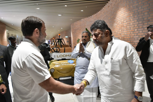 At the airport, Rahul Gandhi was welcomed by Karnataka Chief Minister Siddaramaiah and Deputy CM and state Congress President D.K. Shivakumar.