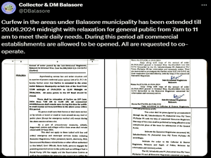 Speaking to the mediapersons after a high-level meeting on Wednesday, Balasore Collector Ashish Thakare said: "Curfew will be eased tomorrow from 7 a.m. to 11 a.m. We will allow the opening of different commercial establishments so that people can do their daily needs without any difficulties.