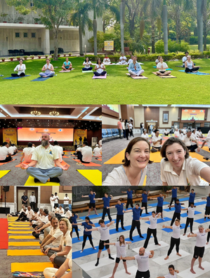 Marking the International Day of Yoga, staff members of the Embassy of France in India gathered for a session in the spirit of this year's theme, 'Yoga for self and society'.