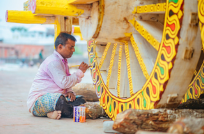 Hundreds of traditional carpenters and painters are busy giving finishing touches to the three huge chariots of the Lords.