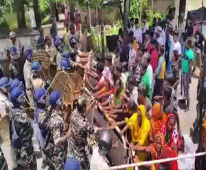 On Tuesday morning hundreds of local people, mostly women, assembled at the police station and started protesting. The crowd became quite aggressive at one point in time and tried to enter the police station. The huge police contingent present there had a tough time keeping the aggressive crowd at a distance from the entrance gate of the police station.