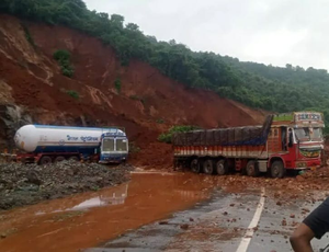At least seven people, including five members of a family, were killed in a landslide on a highway near Shirur town in Karnataka's Uttara Kannada district on Tuesday.