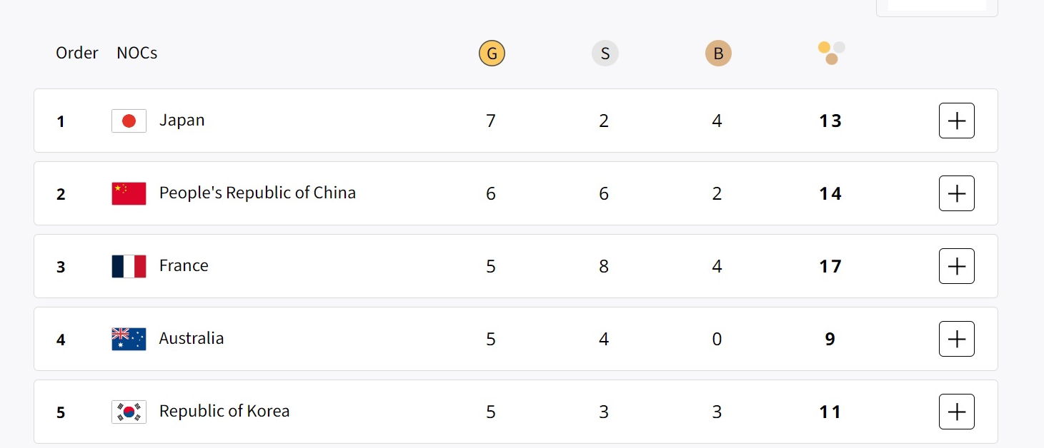 Paris Olympics Medal Tally: Japan retain top spot, China 2nd, India placed 31st
