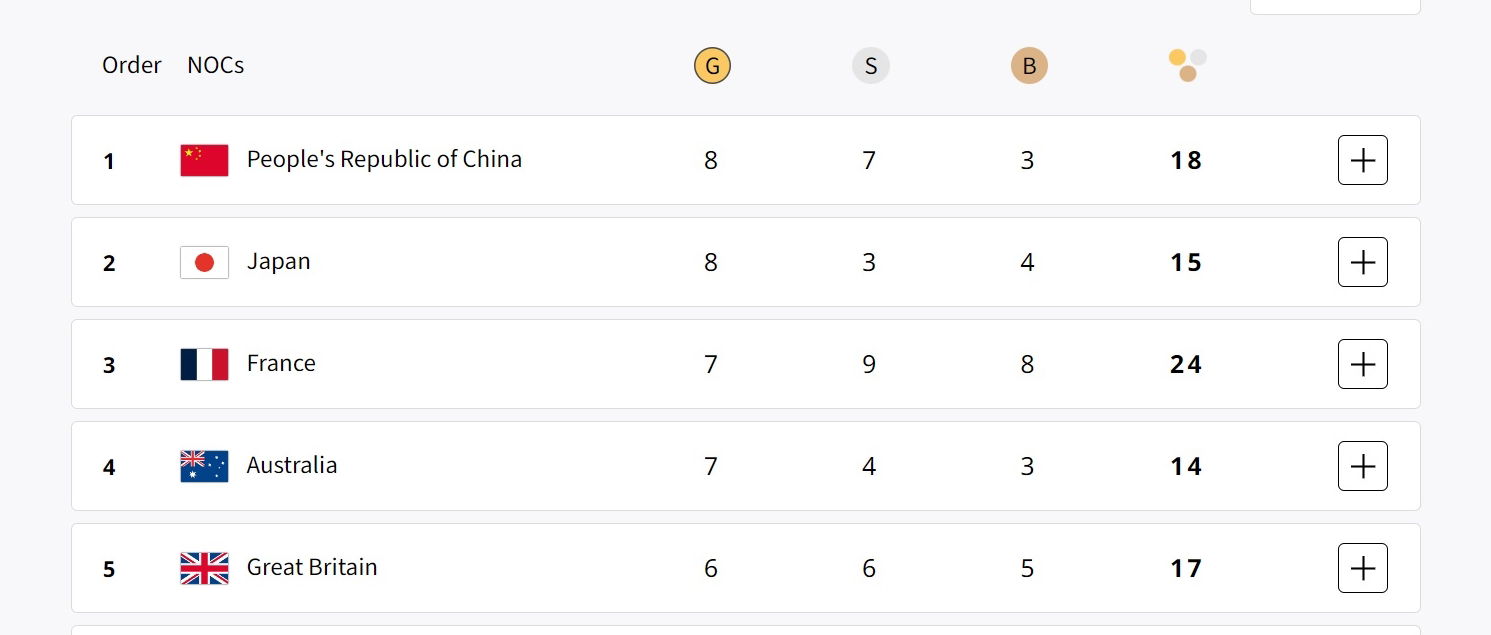 Paris Olympics, Medal Tally: China climb to the top, India placed 39th