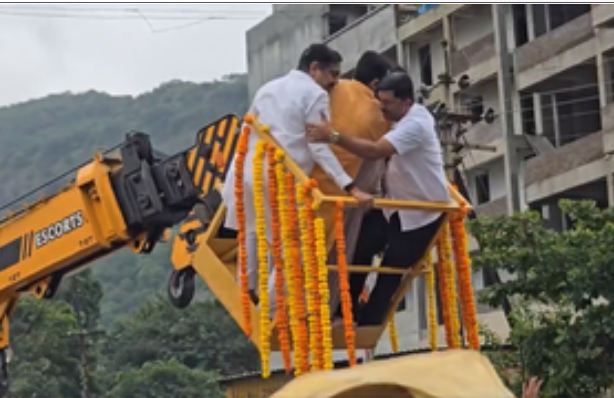 The mishap occurred when NCP(SP) state President Jayant R Patil, Maharashtra’s Women's Wing President Rohini Khadse, state Youth Wing President Mahebub Shaikh and local MP Amol Kolhe, were hoisted in the crane trolley to garland a huge statue of Chhatrapati Shivaji Maharaj at the base of his birthplace, the historic Shivneri Fort.