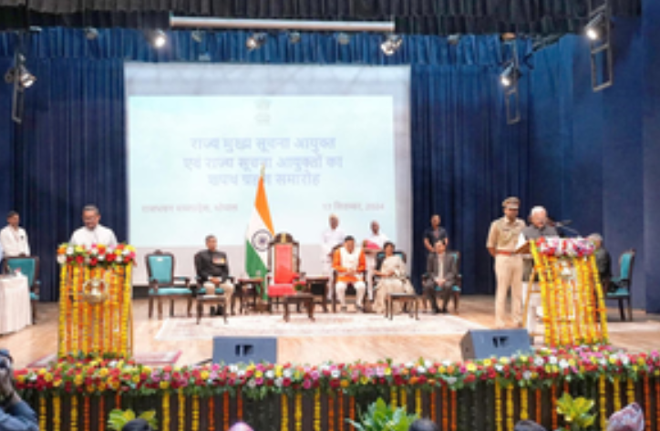 Madhya Pradesh Governor Mangubhai Patel administered the oath to the CIC in presence of Chief Minister Mohan Yadav at Kushabhau Thakre Auditorium in Bhopal.