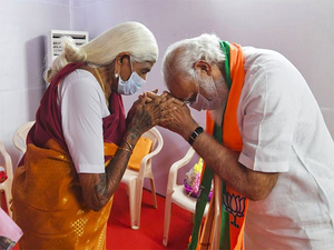 During their meeting, PM Modi showed immense respect by bowing down to seek Pappammal's blessings.