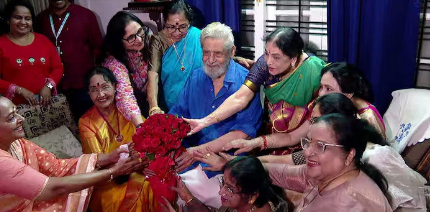 Veteran actresses present tokens of love to Madhu, the legendary Malayalam actor who has turned ninety. Amid the hustle and bustle of the film festival, the veteran actresses visited Madhu at his home in Kannanmoola, Thiruvananthapuram. K.R. Vijaya, Roja Ramani, Usha Kumari, Rajasree, Hema Choudhary, Reena, and Bhavani were the veteran actresses who visited the senior actor's home. The living room transformed into their own world, filled with conversations, laughter, sweet memories, and stories. The actresses honored their beloved hero with a golden shawl of respect and flowers of love. The characters that once shone brightly on the silver screen remain vivid even today, and their memories too seem ageless. Bidding a temporary farewell to the sweet memories, the actresses departed with endless stories left to share.