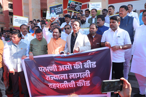 Earlier, the Opposition staged a protest on the Parbhani and Beed issues at the entrance of the state legislature.