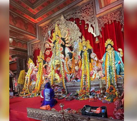 Priyanka took to Instagram, where she shared a glimpse of the idol of Goddess Durga from the pooja.