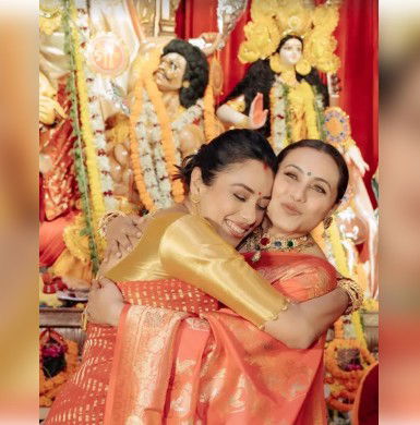 Bollywood star Rani Mukherjee and television superstar Rupali Ganguly came together in a festive embrace during the ongoing Durga Puja celebrations in Mumbai.