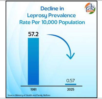 As per an official statement, India in 2025 had a prevalence rate of 0.57 per 10,000 population and 0.82 lakh patients on treatment. In stark contrast, the country in 1981 had a prevalence rate of 57.2 per 10,000 population and 39.19 lakh patients on treatment.