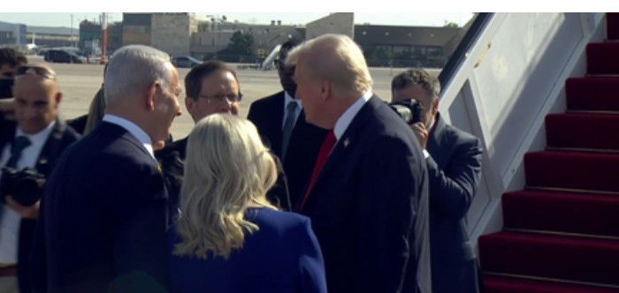 Israeli Prime Minister Benjamin Netanyahu and President Isaac Herzog welcomed US President Donald Trump on Monday as he arrived at Ben-Gurion International Airport.