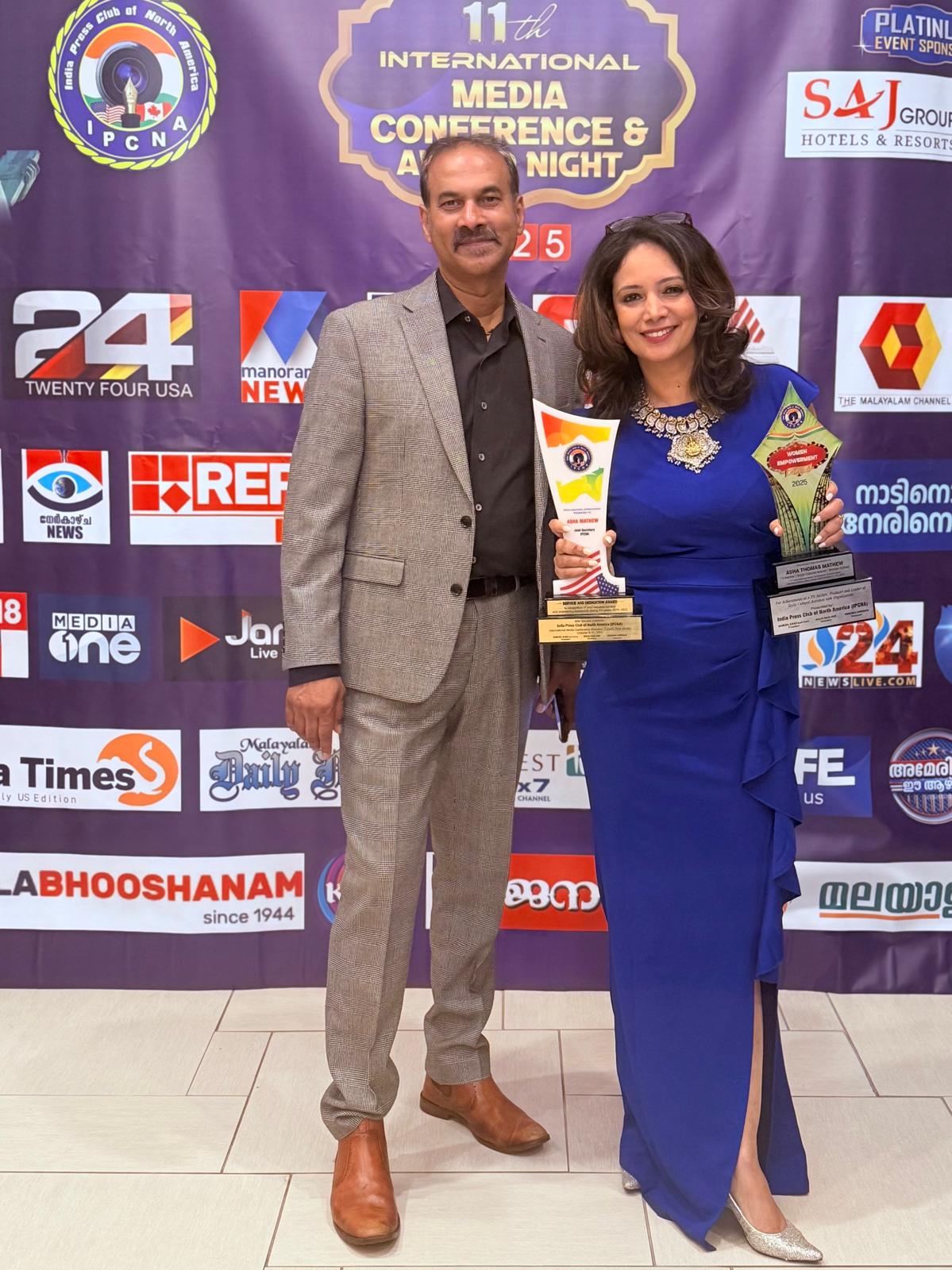 This year marks a remarkable milestone for Asha Thomas Mathew, as she receives the prestigious Women Empowerment Award 2025 from the India Press Club of North America (IPCNA). Asha’s journey stands out as a distinct example of leadership, resilience, and vision among women professionals and community leaders.