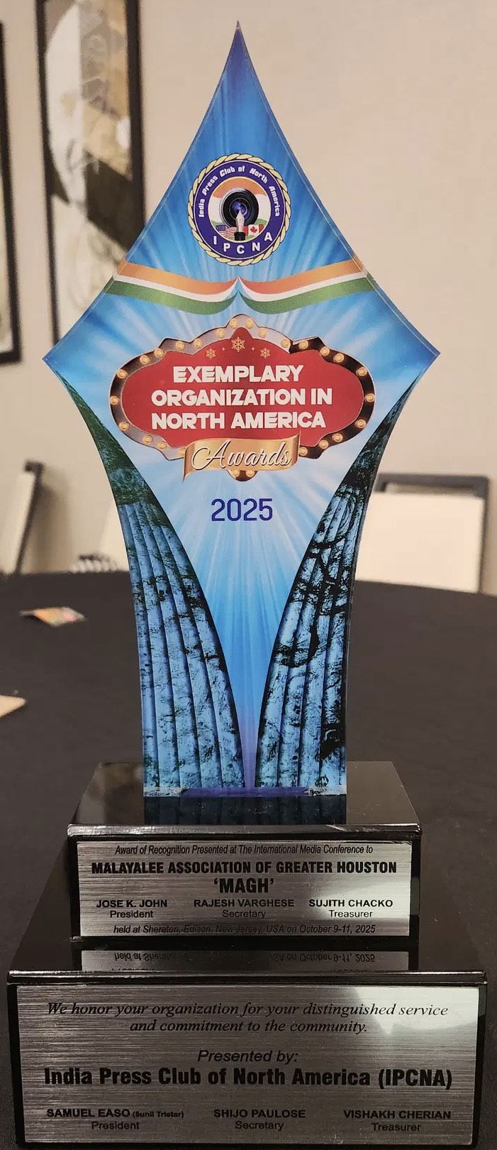 The Malayali Association of Greater Houston (MAGH) has been honored with the 2025 Best Organization Award by the India Press Club of North America (IPCNA) for its outstanding contributions in social, cultural, and community service activities.