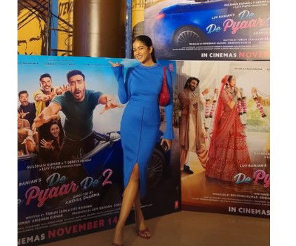She took to the Stories section of her Instagram handle and shared a photo of herself posing next to a billboard of "De De Pyaar De 2", most likely in a cinema hall.