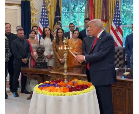 Trump lit the diya in the Oval Office, calling it "a symbol of faith in the victory of light over darkness" and extended his "warmest wishes to the people of India".