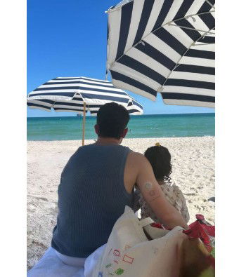 Priyanka took to Instagram stories, where she shared a serene picture of the father-daughter duo from their time at the beach. The two are sitting together on the sand, facing the ocean. They’re under striped beach umbrellas. Nick could be seen dressed in a sleeveless ribbed top, and a glucose monitor was visible on his arm.