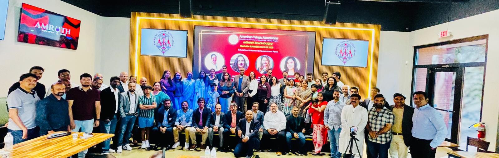 The American Telugu Association (ATA) successfully hosted a Regional Business Summit in Nashville, TN, on Sunday, October 19th. Held at Amruth Franklin, TN, the event drew over 150 passionate business aspirants and featured an esteemed panel of industry leaders and experts from sectors including Real Estate, Hospitality, Banking, Education, Women Empowerment, and AI-driven Value Creation.