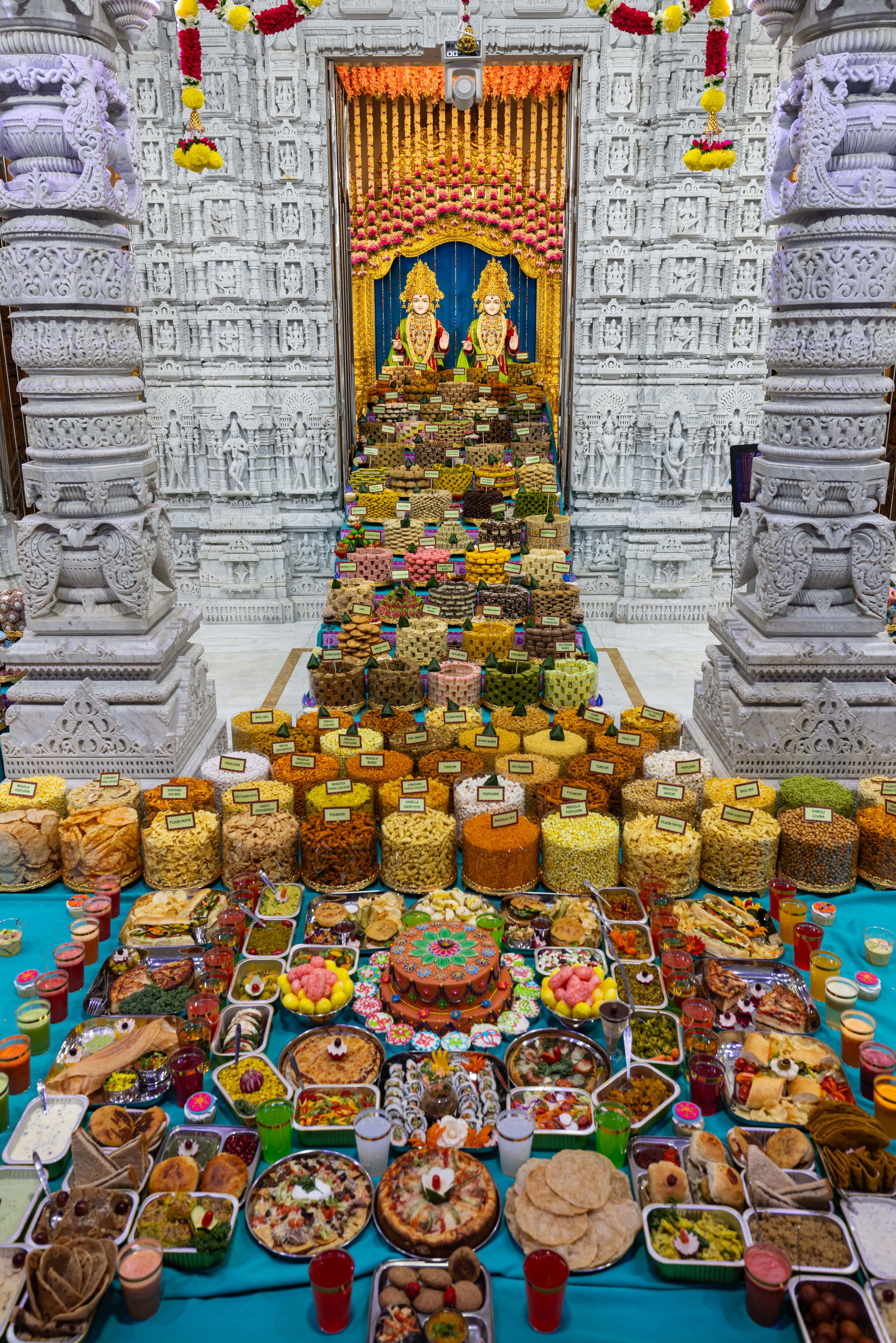 A central feature of the festival was the ‘Annakut,’ or “mountain of food,” in which hundreds of vegetarian dishes prepared by devotees of all ages were beautifully arranged and offered to the Divine. The Annakut served as a symbol of gratitude and devotion while also showcasing the dedication and collective spirit of the community.
