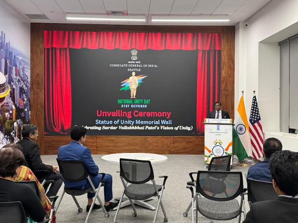 On the occasion of Ekta Diwas (National Unity Day), a special wall installation honouring the legacy of Sardar Vallabhbhai Patel was unveiled today at the new Chancery premises of the Indian Consulate in Seattle.