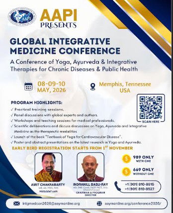 The American Association of Physicians of Indian Origin (AAPI), in partnership with the American Academy of Yoga and Medicine (AAYM) and India’s Ministry of AYUSH, has announced the inaugural American Conference on Yoga, Ayurveda, and Integrative Therapies for Chronic Diseases and Public Health.