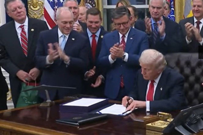 “It’s a great day”, Trump said after signing the bill, which the Republicans consider a triumph as they got it through Congress without giving in to the Democrats’ demands.