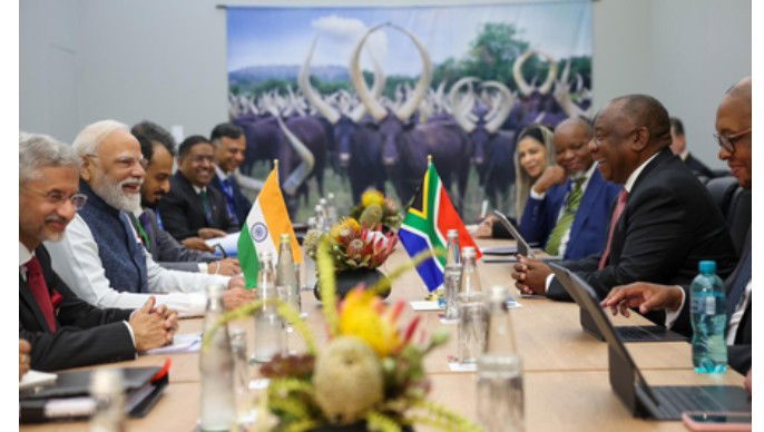 Prime Minister Narendra Modi held a meeting with South African President Cyril Ramaphosa on the sidelines of the G20 Leaders Summit in Johannesburg on Sunday and discussed bilateral partnership, particularly in boosting linkages of commerce, culture, investment and diversifying cooperation in technology, skilling, AI, critical minerals and other sectors.