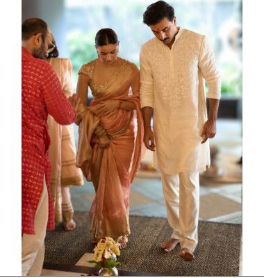 In the pic on her IG, Alia and Ranbir were seen performing pooja making for a lovely couple in ethnic attire.