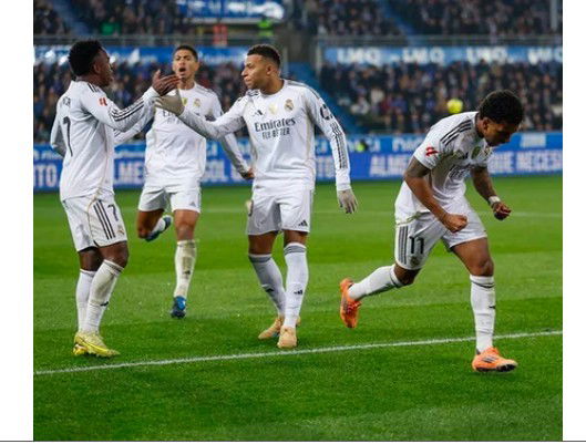 Kylian Mbappe and Rodrygo scored to give Real Madrid a 2-1 win away to Alaves, trimming the gap to La Liga leader FC Barcelona to four points.
