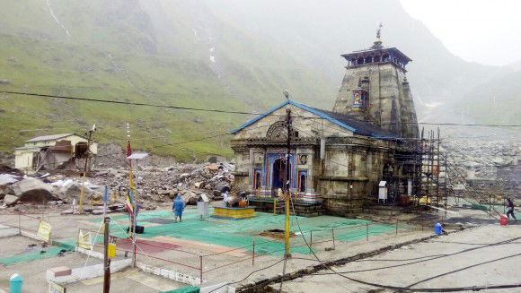 Kedarnath: A view of deserted Kedarnath Temple as pilgrims were stopped after fears mounted that the incessant rain could trigger landslips on July 11, 2015. (Photo: IANS)