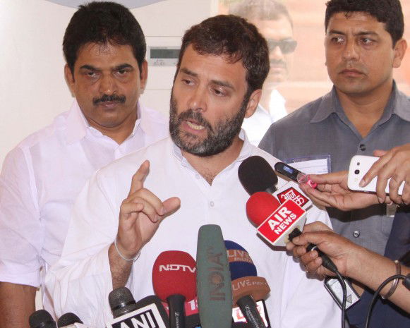 Addressing saffron farmers in Pampore in south Kashmir's Pulwama district, Gandhi targeted the ruling Peoples Democratic Party (PDP) and the Bharatiya Janata Party (BJP) coalition.