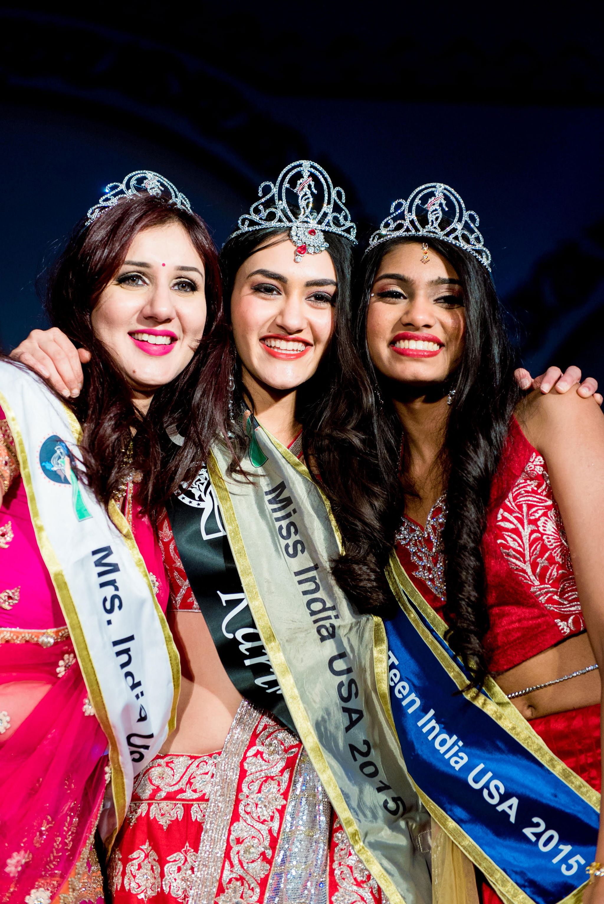 Miss India USA 2015 Karina Kohli flanked by Mrs. India USA Neha Multani Verma (L) and Miss Teen India USA Aanchal Shah (R)