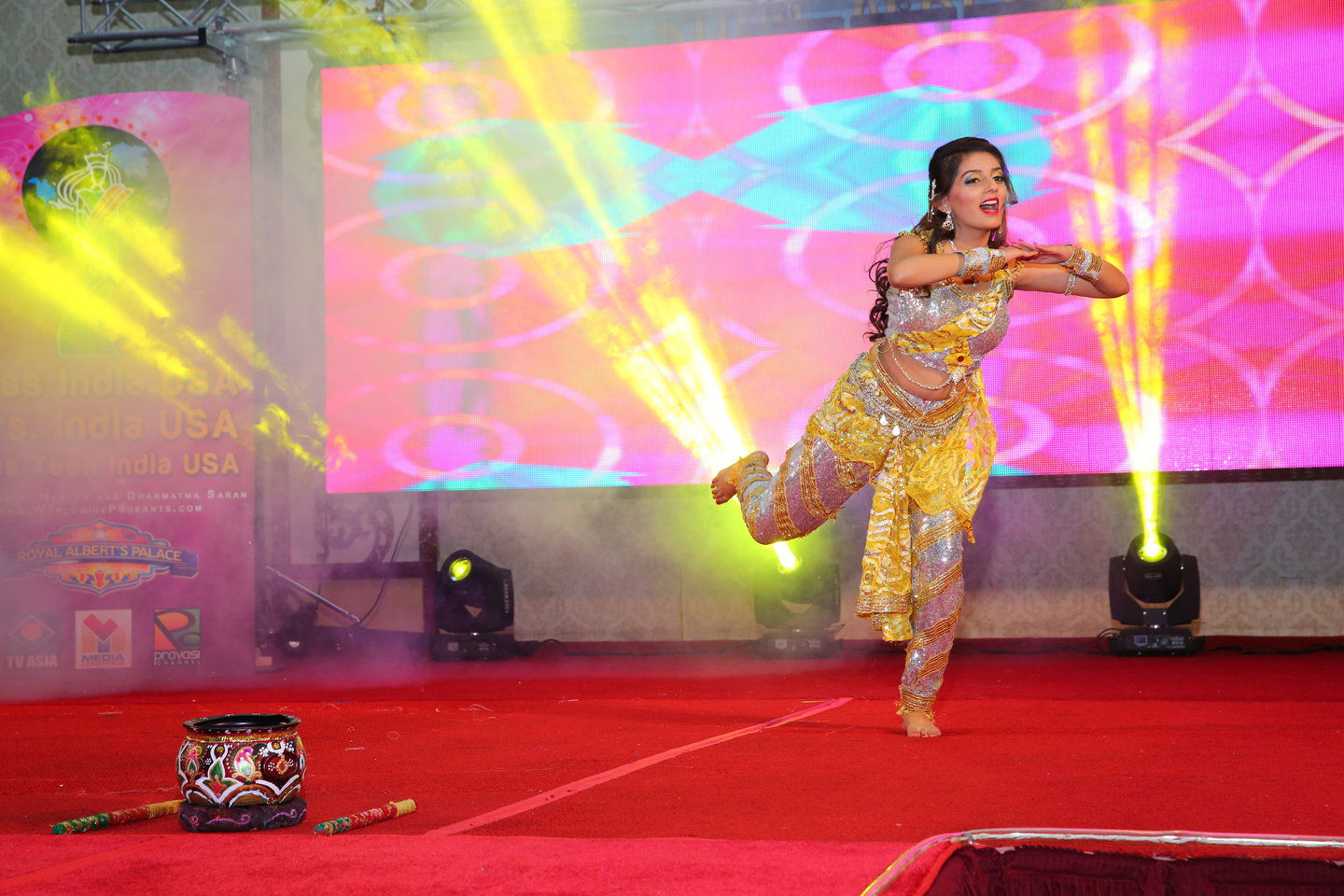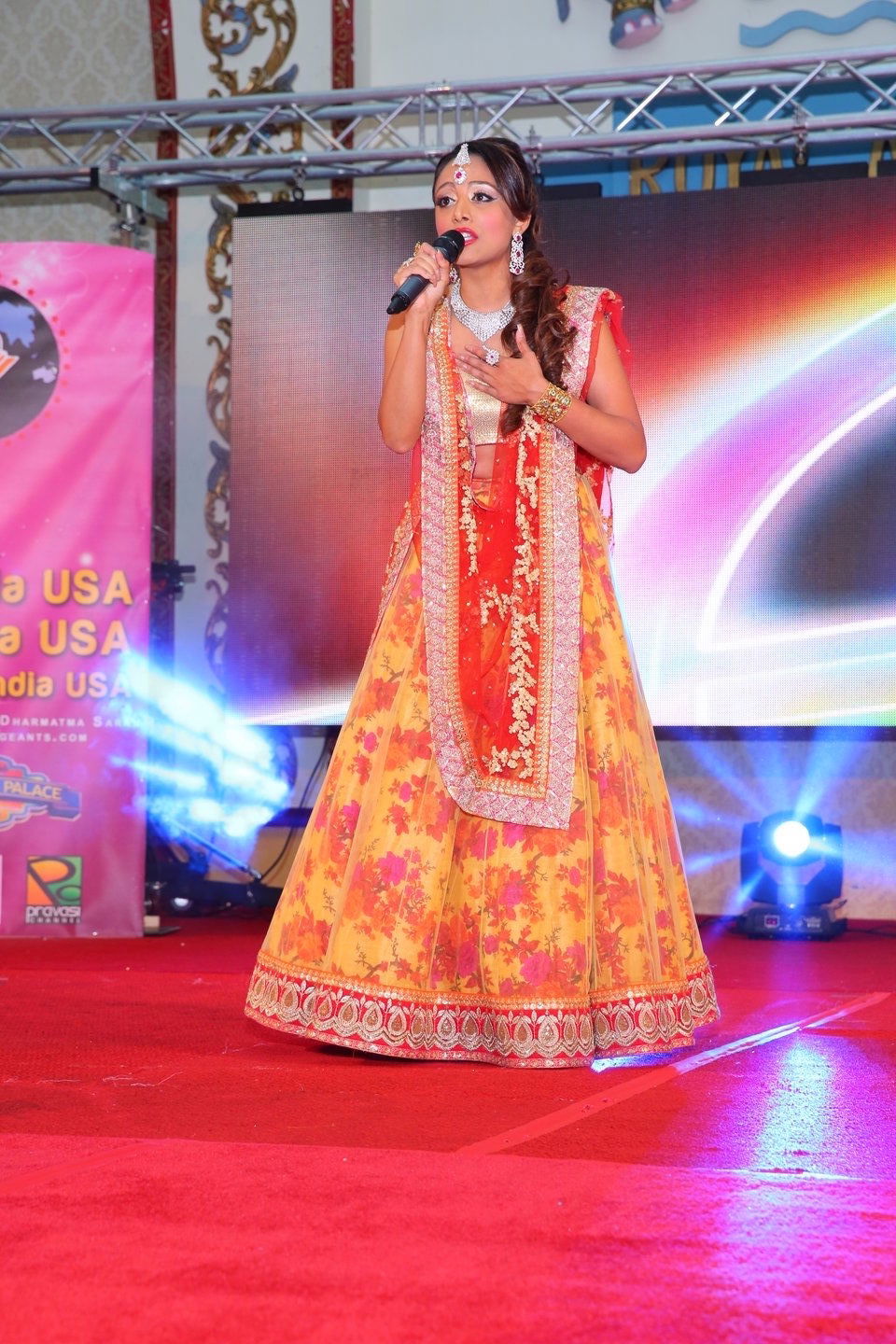 The pageant started with a stunning performance by all the contestants led by the outgoing queens Miss India USA – Pranathy Gangaraju, Miss Teen India USA – Riya Kaur and Mrs. India USA Namita Dodwadkar choreographed by Shilpa Jhurani. All contestants presented their best in the Indian and the evening gown segment after which the top ten were selected. The top ten contestants from Miss section then amazed the audience with their talent which included Bollywood dances, Indian classical dances, contemporary dancing and singing. In the Miss section, Nandini Iyer was awarded Miss Talented.