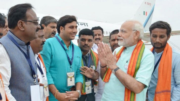 Modi, who is campaigning for the Bharatiya Janata Party (BJP) for a second day, addressed the rally for some 30 minutes in Hindi.