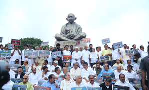 The Karnataka Congress staged a ‘Raj Bhavan Chalo’ protest march on Saturday, condemning the Governor’s consent to prosecute Chief Minister...